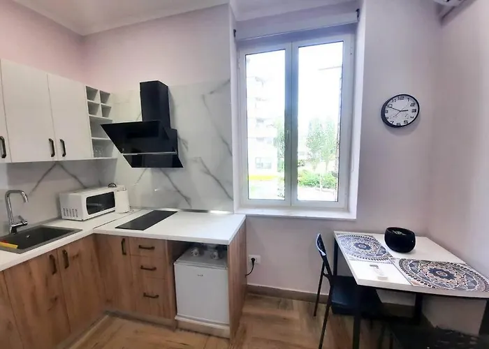 Die Unterkunft verfügt über eine voll ausgestattete Küche mit einem Wasserkocher, einem Kühlschrank und einem Herd. Diese Unterkünfte ist in 150 Meter Entfernung zur Bushaltestelle Stadiumi Dinamo.